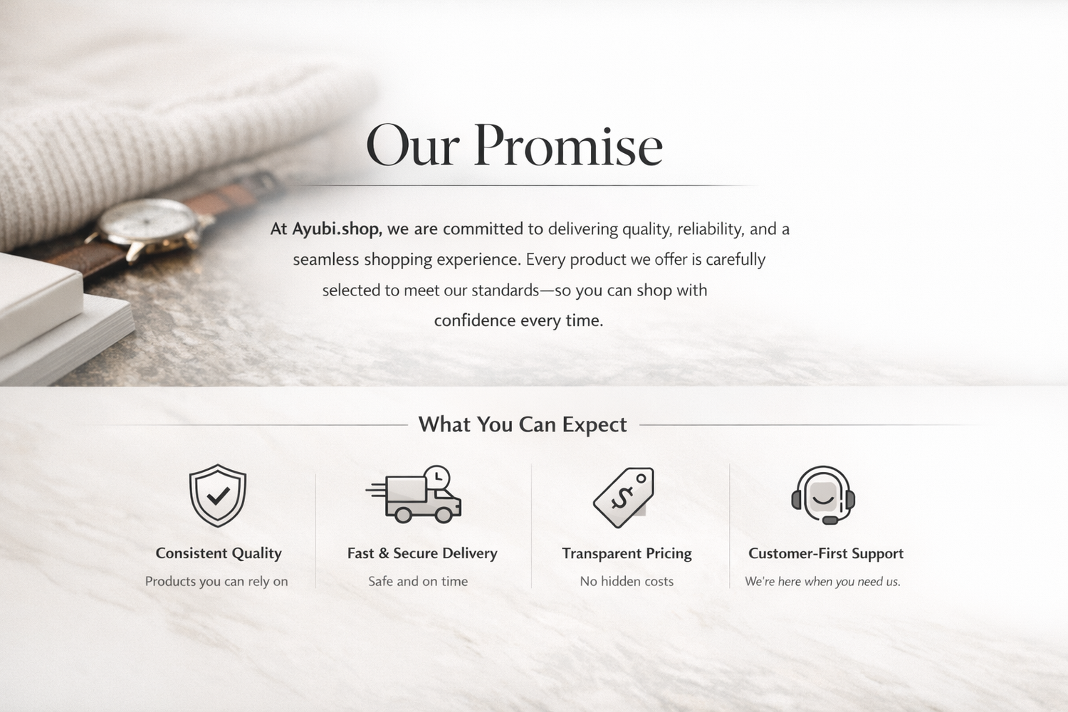 🖤 About Ayubi.shopAt Ayubi.shop, we believe shopping should be simple, reliable, and inspiring.Our mission is to bring you carefully selected products that combine quality, style, and everyday practicality.We focus on offering items that not only look good but also deliver real value—products you can trust and use with confidence in your daily life.