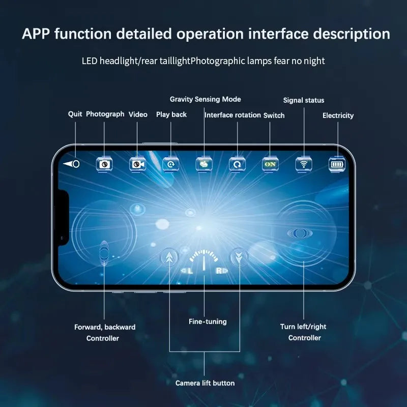 Dieses ferngesteuerte Boot verfügt über eine eingebaute Kamera für Unterwasserfotos und Videoaufnahmen in Echtzeit. Der stromlinienförmige Körper gleitet sanft und mit minimalem Widerstand durchs Wasser, sodass es sich leicht in Pools, Seen, Flüssen oder sogar Aquarien navigieren lässt. Steuern Sie es mit der mitgelieferten Fernbedienung oder wechseln Sie zur mobilen App für eine schwerkraftsensible Bewegungssteuerung, indem Sie Ihr Telefon neigen. Das Sechs-Kanal-System ermöglicht eine vollständige Richtungsbewegung, einschließlich vorwärts, rückwärts, drehen und rotieren. Fotos und Videos werden direkt auf Ihrem Gerät gespeichert, um sie einfach teilen zu können. Geeignet für Erwachsene und Kinder ab 8 Jahren, ist dieses RC-Boot ein aufregendes Geschenk für jeden, der neugierig darauf ist, Unterwasserwelten zu erkunden.